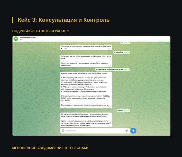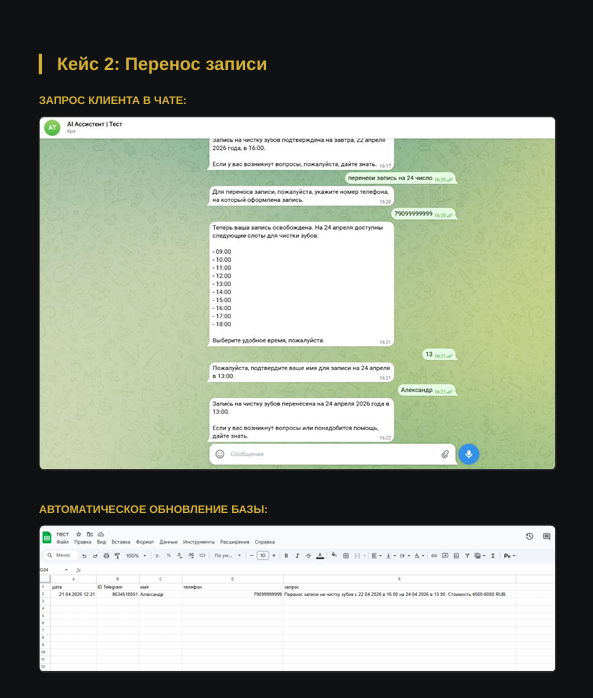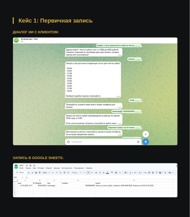 | Сегодня, 11:15 | Мария (@mary_invest) | "Сколько стоит внедрение ChatGPT в отдел продаж?" | ⏳ Теплый лид | ✅ Записано в таблицу |